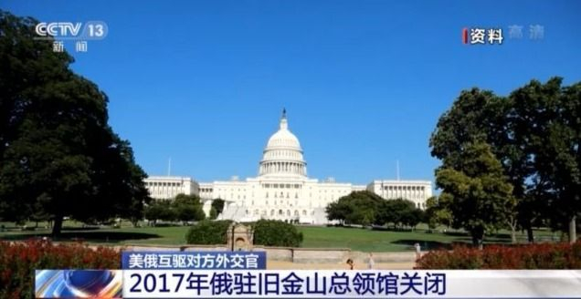 美国国会2017年7月通过对俄罗斯等三国制裁法案。俄罗斯此后要求美国将驻俄外交机构工作人员裁减755人,以使俄美在对方国家的外交机构人数达到对等的455人。作为回应,美国国务院同年8月31日称,美方要求俄方关闭俄驻旧金山总领馆及位于华盛顿和纽约的各一处外交设施。