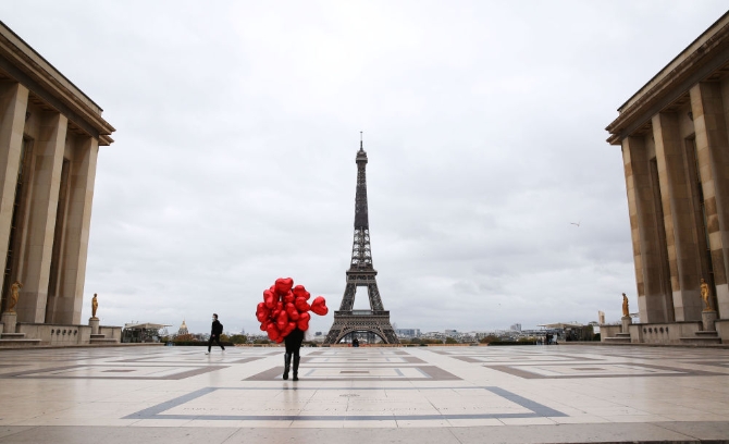 10月30日法国再度全国“封城”,法国巴黎埃菲尔铁塔附近的特罗卡德罗广场变得十分空荡。新华社记者 高静 摄