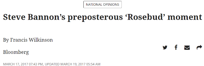 △2017年,彭博社发表评论,讽刺特朗普竞选团队负责人史蒂夫·班农更像是一个政治投机者。