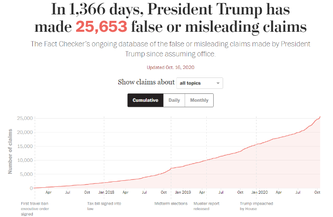△截至美东时间7月13日,《华盛顿邮报》统计特朗普时期总统团队在“错误信息”上的所有表述次数高达25653次,分析称,通过发布“错误信息”和带有“误导性的信息”,政客可以塑造个人形象、传达某种特定立场和态度以及影响民众认知。