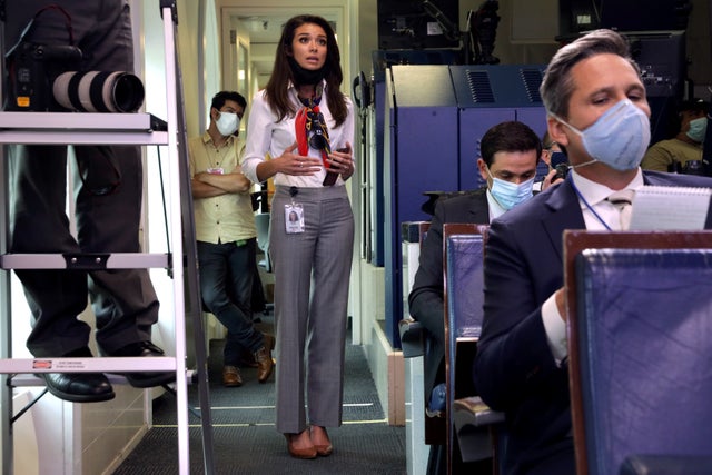 △“一个美国新闻”(OAN)的女记者应邀参加白宫新闻发布会。