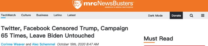 一方面,相对传统的媒体“炮制假新闻”,另一方面,社交媒体对美国政客们的“差异化”对待,更让不实消息得以大肆传播。今年10月19日,美国媒体监督组织“美国媒体研究中心”发布了一项有关美国社交媒体的调查。调查显示,自2018年5月以来,美国总统特朗普共计被推特、脸书审查65次。尽管特朗普屡屡发布虚假消息,脸书与推特直到今年7月底才对其正式启用事实核查,但无论是脸书还是推特,也仅仅只能标识出其发言可能存在不实言论,直至今年8月5日,脸书与推特才第一次因“不实言论”删除了特朗普的帖子。