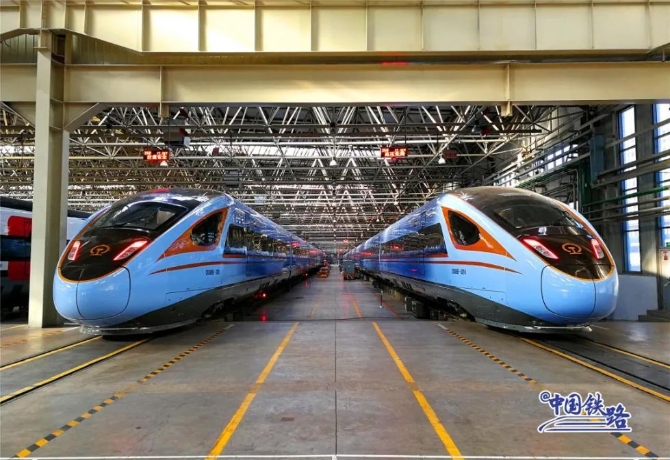 CR300BF型复兴号动车组在外观上选用浅蓝色,因此得名“蓝暖男” ,凭借独特形象在“复兴号家族”中成功出圈。