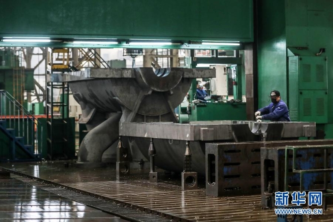 2月10日,沈阳鼓风机集团股份有限公司的工人在车间生产。新华社记者 潘昱龙 摄