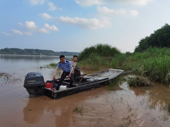 为了不影响视线,方便巡护,船舱没装顶棚。冰冷刺骨的江风,裹挟着空中的雨丝和舱底的细沙,一股脑扑在队员们的脸上、眼里,很快又顺着脸庞滴落了下来。他们的衣服早已被打湿。
