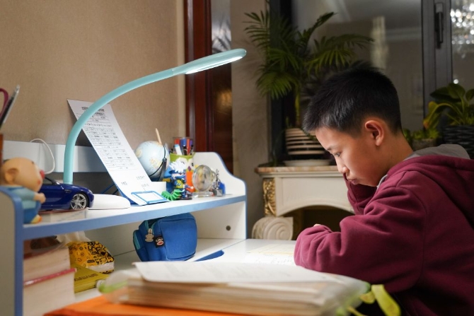 12月21日,蔡昊霖在家中学习。
