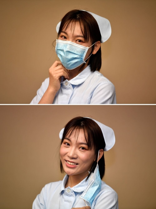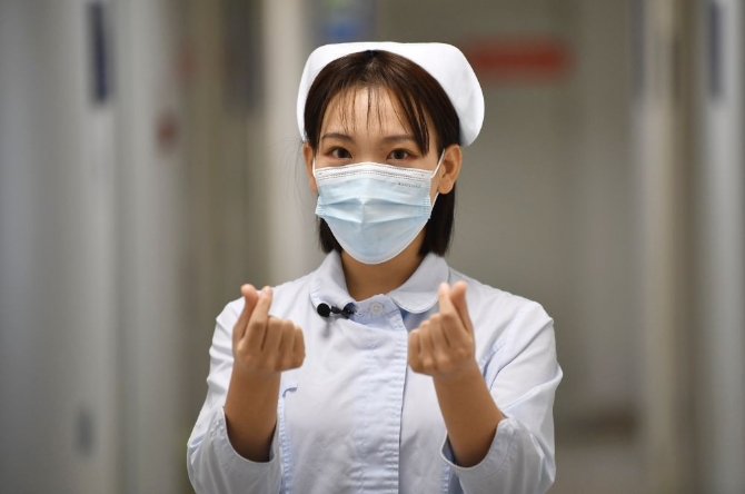 一身护士装出现在镜头前,张硕依然戴着口罩,却遮挡不住眉宇间散发出的青春朝气。