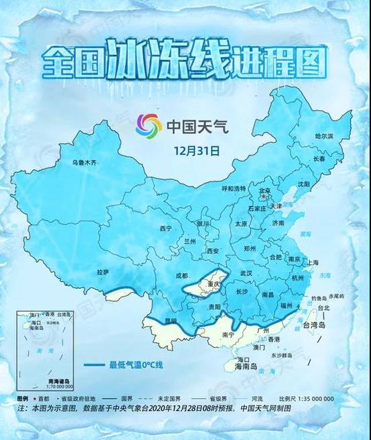 一图看冰冻线何时跨长江、