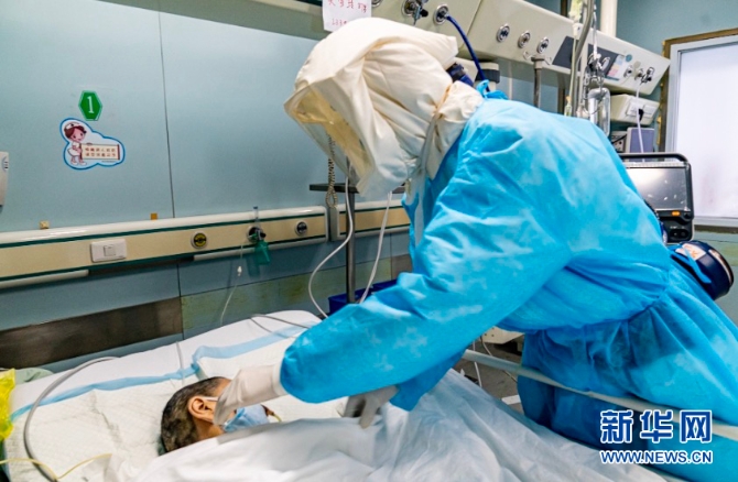 武汉市金银潭医院护士梁顺在工作中(资料照片)。新华社发