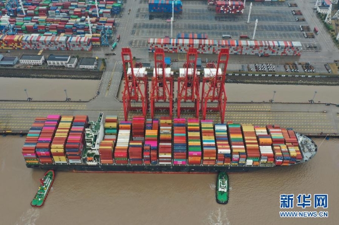 码头停靠着来自世界各地的巨轮,巨型桥吊高耸林立,集卡运输川流不息——宁波舟山港正以昂扬的姿态迈入新的一年。