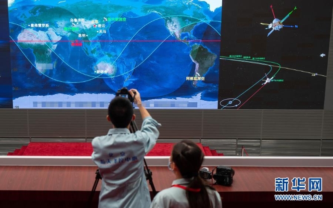 在北京航天飞行控制中心,航天科技人员在现场工作(2020年8月2日)。2020年8月2日7时整,我国首次火星探测任务“天问一号”探测器3000牛发动机开机工作20秒,顺利完成第一次轨道中途修正,继续飞向火星。新华社记者 才扬 摄