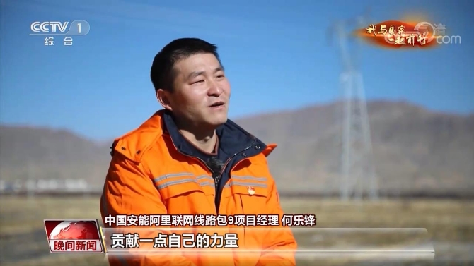 中国安能阿里联网线路包9项目经理 何乐锋:每次我们在现场施工的时候,当地的牧民,老乡他们都会过来看一看,每一次我们都会斩钉截铁地告诉他们,我说保证能在年底之前给你们送上电。看到老乡满脸的笑容,我们心里就是真的是这种幸福感,真的就是感觉在老乡们脱贫致富的道路上我们能给他们点上一盏灯,贡献一点自己的力量。