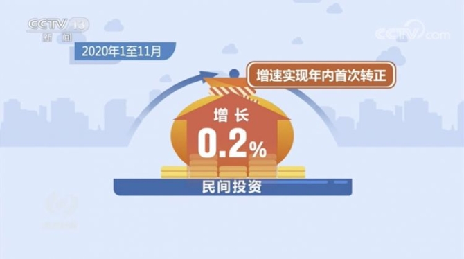 在一揽子政策的精准驱动下,中国经济增长速度二季度由负转正,但很多人担心这种复苏的势头能不能延续?能不能激活市场内生的力量?2020年10月19日,三季度经济运行数据公布,三季度GDP增长4.9%。前三季度经济增长由负转正,按可比价格计算,同比增长0.7%,这标志着在全球主要经济体中,中国经济已经率先复苏。到2020年底,更加喜人的数据陆续公布,1月至10月,全国规模以上工业企业实现利润同比增长0.7%,规模以上服务业企业营业收入同比增长0.3%,增速都实现了年内首次由负转正。1月至11月,民间投资增长0.2%,增速也实现了年内首次转正。