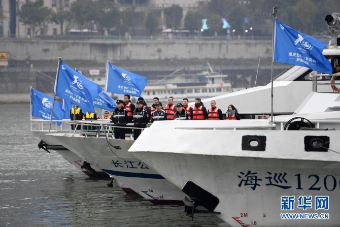 执法船队在重庆江北嘴执法船舶码头整装待发(2020年12月31日摄)。当日,长江流域重点水域“十年禁渔”全面启动活动(重庆分会场)在重庆江北嘴执法船舶码头举行。新华社记者 唐奕 摄
