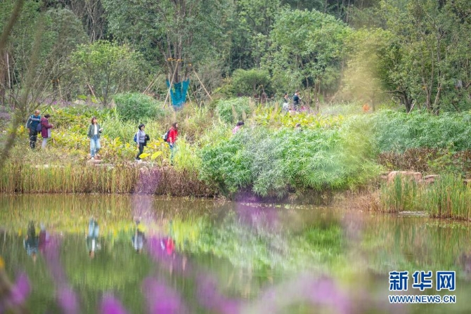 游客在重庆广阳岛一期生态修复综合示范片区游玩(2020年10月18日摄)。新华社记者 黄伟 摄