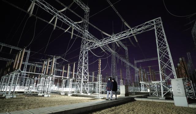 1月7日,在国家电网沈阳供电公司浑河变电站,工作人员对电力设施进行巡视。