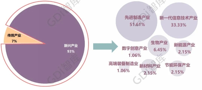 今年上榜的100家企业中,共有93家企业属于新兴产业,其中先进制造业有48家,占上榜新兴产业企业51.61%;其次是新一代信息技术产业31家,占上榜新兴产业企业33.33%。