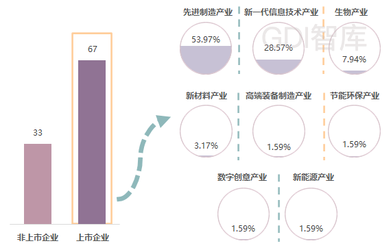 图3上榜企业上市情况分布及上市企业所属战略性新兴产业分布
