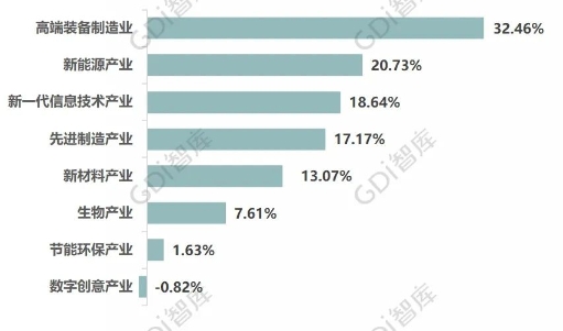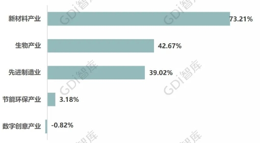 榜单显示,粤东西北上榜优势创新企业所属产业中新材料产业最具成长性,平均成长性为73.21%;其次是生物产业和先进制造业,平均成长性分别为42.67%和39.02%;节能环保产业相距上述三个产业在成长性上表现略有逊色,平均成长性为3.18%。