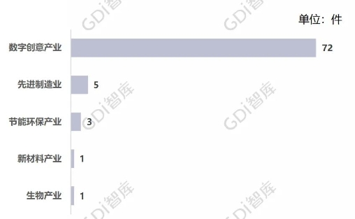 指标显示,粤东西北优势创新企业在国际全球化指标上表现差强人意,上榜企业中发明总量数最大的企业为信利光电股份有限公司,属于先进制造业。数字创意产业因所属企业仅为奥飞娱乐股份有限公司,在该指标上表现优于其他产业。