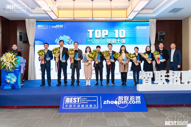 1月13日,“2020中国年度最佳雇主”昆明地区颁奖盛典在阳光酒店举行,现场揭晓了昆明地区10强榜单。