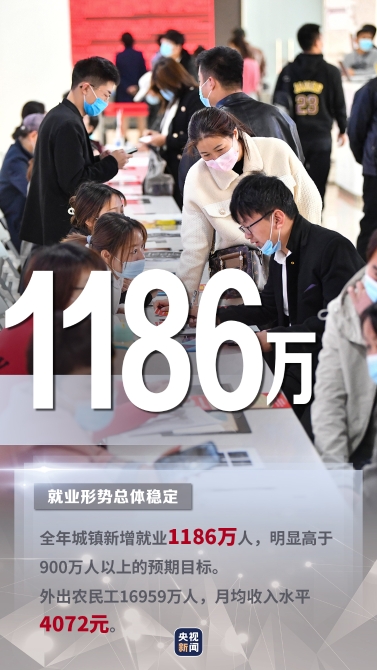 城镇新增就业1186万人
