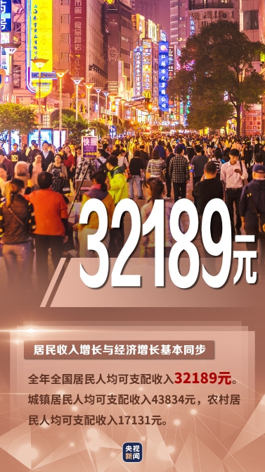 居民人均可支配收入32189元