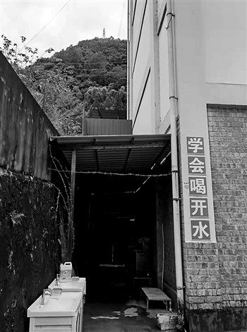 学校水房旁贴了一行大字:学会喝开水。因为很多孩子刚来时,不管多冷的天,对着水龙头就喝。蒋菡/摄