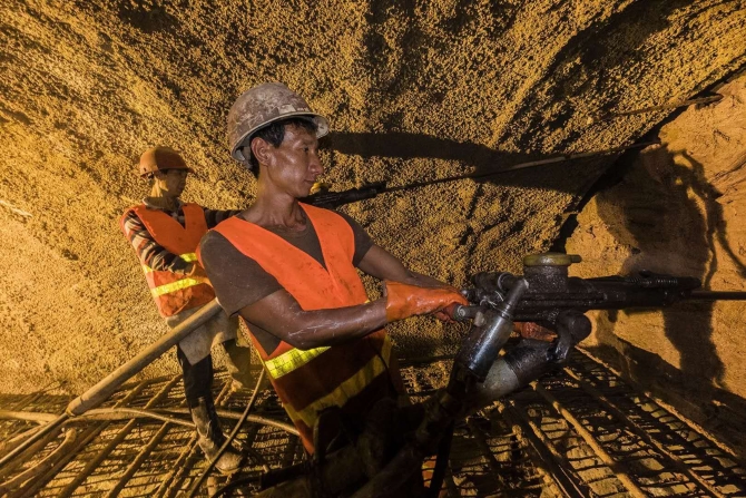 “施工难度很大,工作30分钟至40分钟就必须停下来休息、降温、通风,要不然人会受不了。”中铁八局大瑞项目部秀岭隧道进口工点负责人吴丽君介绍,工作期间必须戴口罩和穿反光背心,每天高强度的工作在6个小时左右,两班人循环施工,确保每天能施工两个循环左右。