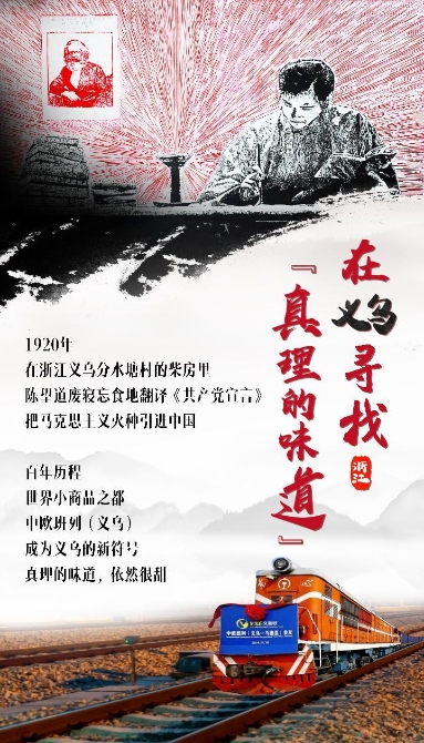 百年前,在义乌闭塞的小山村里,一位满怀救国理想的年轻人,把马克思主义的火种引进了中国。而现今,并行于“望道信仰线”行驶的中欧班列(义乌),也让分水塘这个小山村与全世界的联系再度变得紧密。