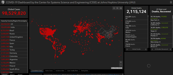 据美国约翰斯·霍普金斯大学截至美东时间23日下午15时21分的数据,美国累计新冠肺炎确诊病例已达到24934941例。死亡人数升至416289人。(央视记者 殷岳)