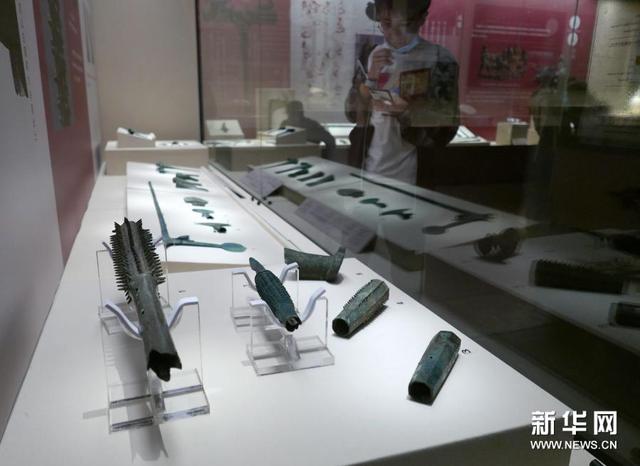 1月25日,参观者在西汉南越王博物馆“滇王与南越王”展现场参观。新华社发(许建梅 摄)
