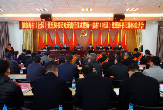 阳宗海村(社区)党组织书记光荣离任仪式暨新一届村(社区)党组织书记集体谈话会在阳宗海管委会举行,以感谢离任村(社区)书记的付出和奉献,激励新一届村(社区)书记担当作为、激情创业,做好村(社区)党组织换届“后半篇”文章。