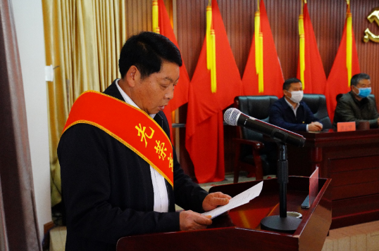 “我志愿加入中国共产党,拥护党的纲领,遵守党的章程……”1月25日上午,阳宗海离任和新一届村(社区)党组织书记面对党旗庄严宣誓。