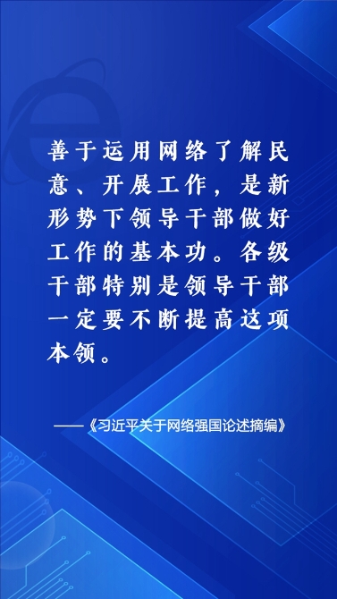 近日,《习近平关于网络强国论述摘编》全国发行。在书中,习近平总书记深刻阐述了善于运用网络了解民意、开展工作的重要意义,指出这是新形势下领导干部做好工作的基本功,为各级领导干部走好网络群众路线、提升工作能力和水平指明了努力方向。