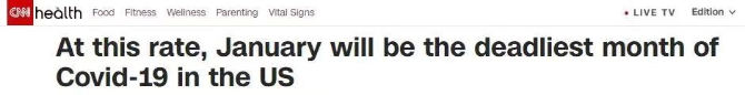 美国是目前全球新冠肺炎疫情最严重的国家。据美国有线电视新闻网(CNN)报道,虽然2021年1月尚未结束,但数据显示,1月已成为美国新冠肺炎疫情暴发以来病亡病例最多的月份。