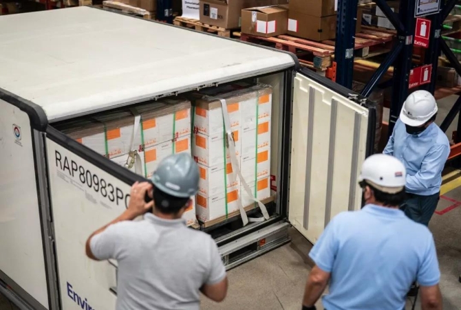 当地时间1月28日,由中国科兴公司研发的新冠疫苗运抵智利。智利总统皮涅拉亲自前往机场迎接。皮涅拉宣布,智利将会从2月3日开始进行大规模疫苗接种工作。