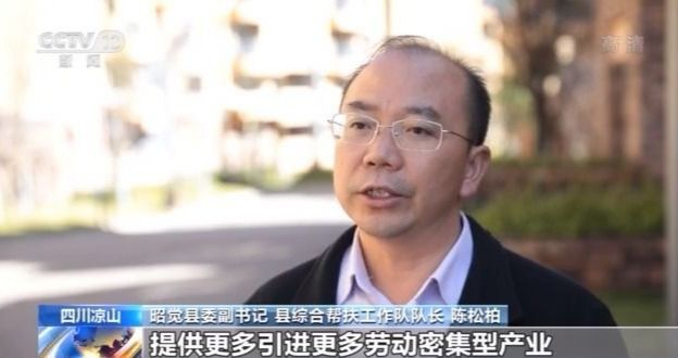 昭觉县委副书记 县综合帮扶工作队队长 陈松柏:搬出来要稳得住,还能致富,这是我们做好下半篇文章很关键的两个方面,只要有劳动能力的,经过培训,争取100%的让他们外出务工或者是就近务工,不落下一个有劳动能力的。我们还在大力招商引资,提供更多、引进更多劳动密集型产业来吸收他们的务工。