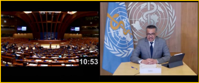 △1月27日,世卫组织总干事谭德塞在欧洲委员会议会大会发表讲话