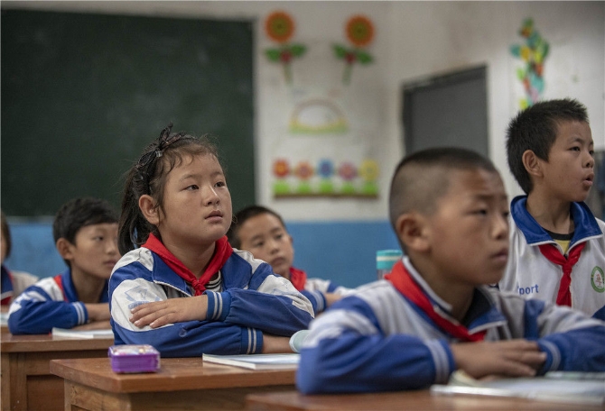 独龙江小学的孩子们在上课(2019年9月1日摄) 。新华社记者 江文耀/摄