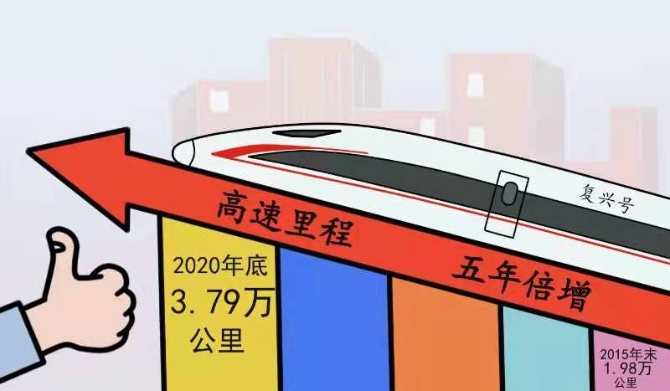 截至2020年底,我国高速铁路运营里程达3.79万公里,较2015年末的1.98万公里,相当于在“十三五”期间翻了近一番,稳居世界第一。数以亿计的中国人搭乘高铁,飞驰在全面建成小康社会的大路上。