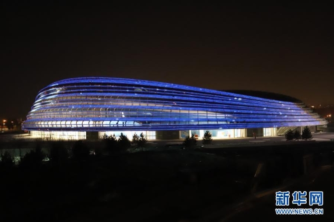 这是2020年12月15日,国家速滑馆进行场馆外立面泛光照明调试。新华社记者 张骁 摄