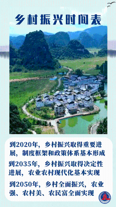 到2050年,乡村全面振兴,农业强、农村美、农民富全面实现。