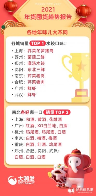 越接近春节,我们对“年味”的追求就越浓,而每个地方都有每个地方的年味,这也是人们都想要回家过年的原因。2月3日,大润发基于全国近500家门店春节前半个月(1月15-1月31日)的销售数据,发布了《2021过年囤货趋势报告》。这段时间,也是大润发为满足人们一站式购齐年货,推出“年货大街”特色主题服务的时间。