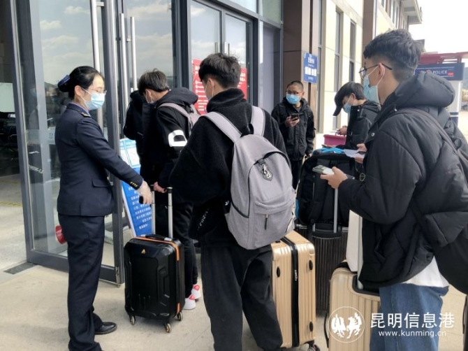 为给学生提供安全、卫生的乘车环境,昆明局集团严格落实疫情防控要求和相关服务举措,加强对站车设备和公共区域的消毒,在进站口安排专人引导学生扫码、测温和佩戴口罩。开辟学生“绿色通道”、学生候车专区,为学生提供行李捆扎等服务,从安检、候车、站台组织等各环节,保障学生安全、有序返乡。