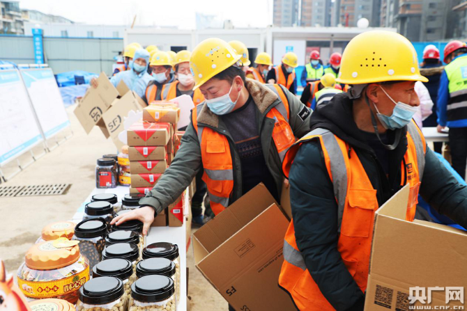 2月4日,陕西省建设工会联合中建五局西北公司为80余名“留陕过年”的工人发放年货,并为有需要的工人免费邮寄回家,年货刚拿到手,廖景文就将东西和信都装进了快递箱,一起寄回了四川南充老家。