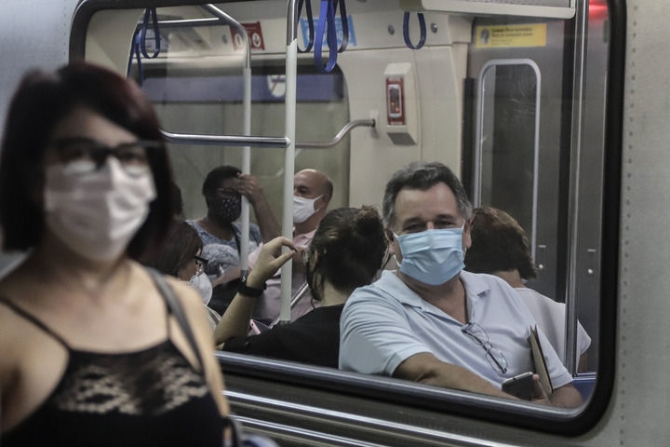 1月28日,市民戴口罩在巴西圣保罗乘坐地铁。新华社发(拉赫尔·帕特拉索摄)