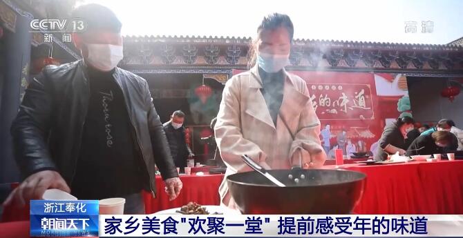 在浙江宁波奉化的千年古村马头村,30多名留在当地过年的外来务工人员欢聚一堂,亲手制作各自家乡的特色菜,提前感受年的味道。