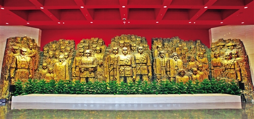 中国人民抗日战争纪念馆入口的大型雕塑《铜墙铁壁》。吴娟/摄