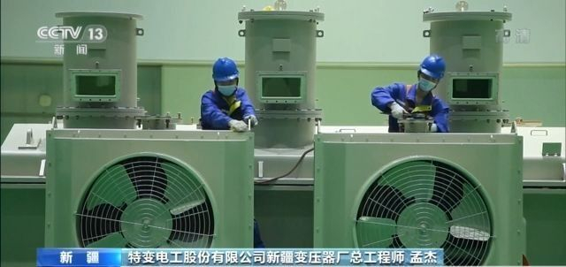 特变电工股份有限公司新疆变压器厂总工程师 孟杰:当前正在生产像国家的疆电外送、能源通道、新能源新基建一些重点领域、特高压超高压领域的产品,也包括咱们海外一带一路的一些重点领域的一些项目。我们节日期间整个应该说产销两旺的。也是响应国家号召,就地过年,我们节日期间组织了500多名员工保障生产任务。